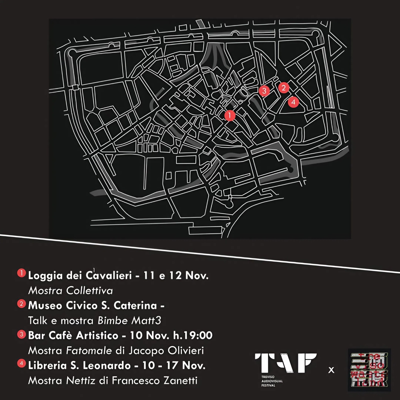 Dal 10 al 12 novembre 2023 Treviso ha ospitato la prima edizione del Treviso Audiovisual Festival (TAF), un progetto culturale indipendente interamente ideato e realizzato da giovani under 25. Il festival ha presentato un programma eclettico di eventi dedicati allβarte audiovisiva, valorizzando talenti emergenti del territorio e ospiti provenienti da altre realtΓ creative.
